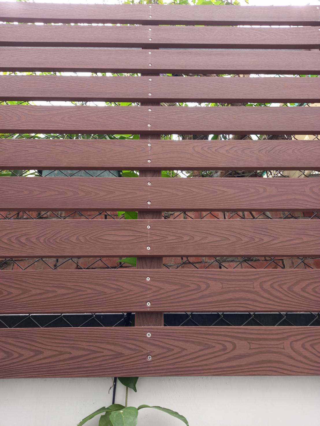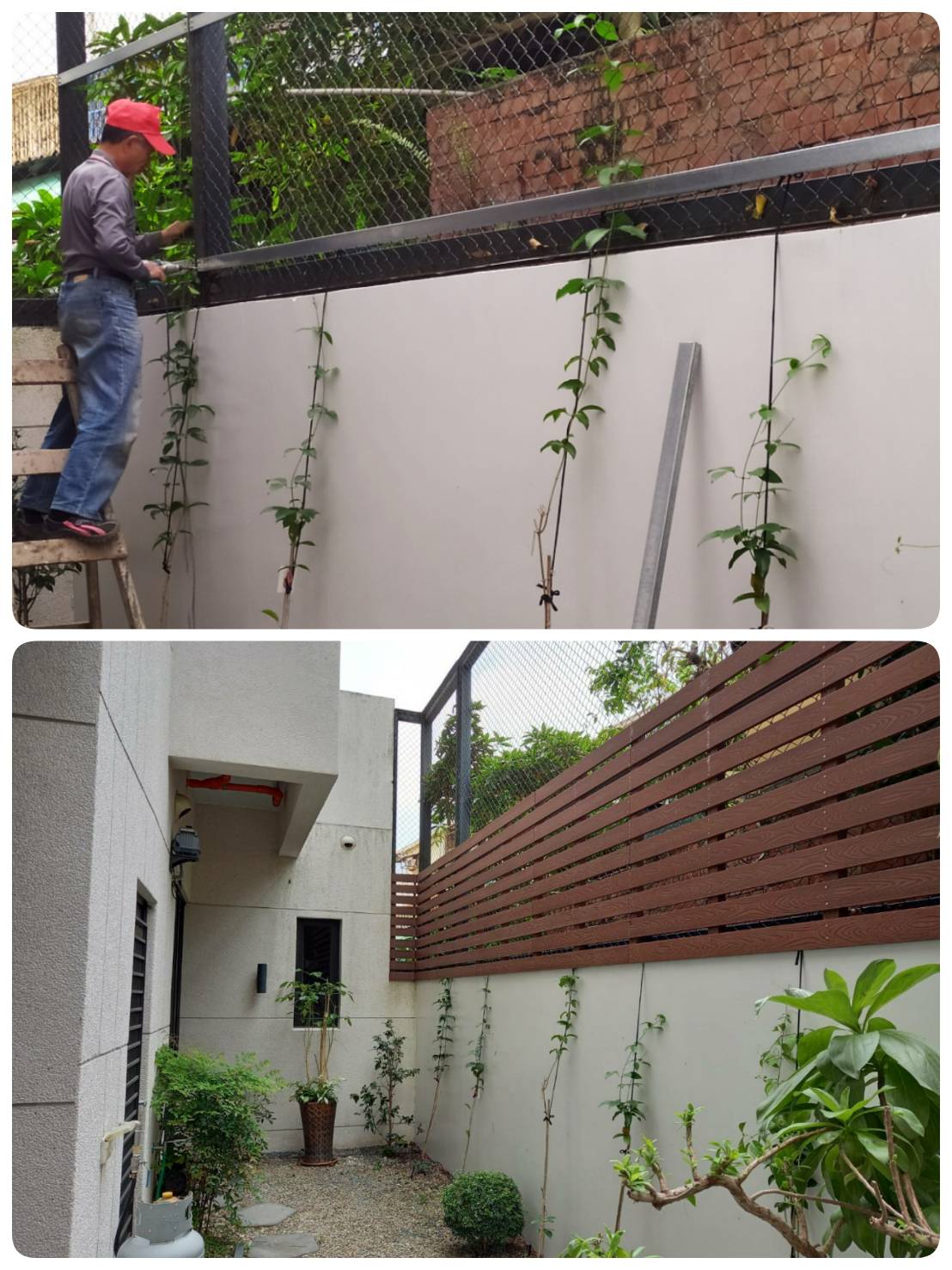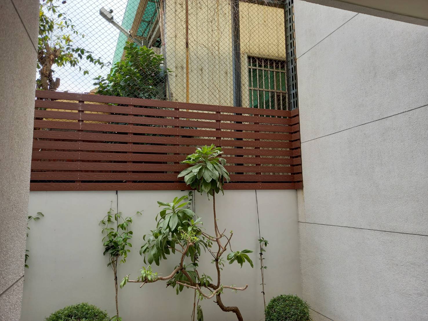 並為自己佈置一處溫馨浪漫花園別墅,將原本呆版的鐵絲網搭上可掛上盆栽的塑木圍籬,整個空間感就提升了!